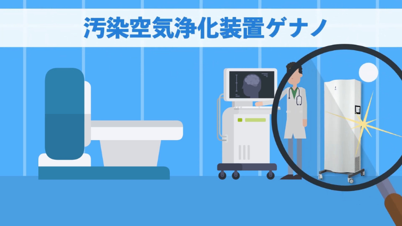 「汚染空気浄化装置ゲナノ」というEU認定医療機器PR動画の制作実績でございます。